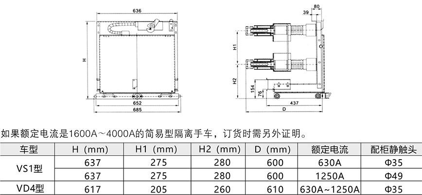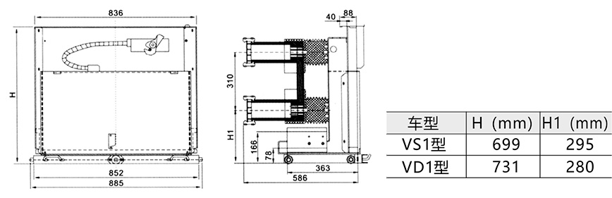 簡易型隔離手車外形尺寸