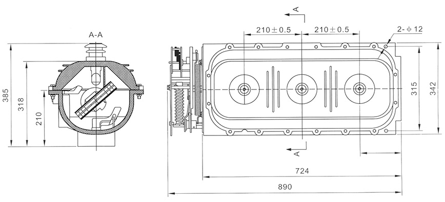 2、采用SF6氣體作為滅弧和絕緣介質,主回路密封在由環氧樹脂澆注的上、下殼體中,導電性能不受外界環境影響。
