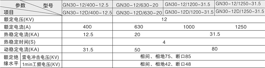GN30-12D型戶內旋轉式高壓隔離開關是在GN30-12型戶內旋轉式高壓隔離開關基礎上增加帶接刀的形式,可滿足不同電力系統的需要。本產品設計緊湊、占用空間小、絕緣能力強、易于安裝調整,其性能符合GB1985-89《交流高壓隔離開關和接地開關》的要求,適用于額定電壓10千伏交流50Hz以下戶內系統中,作為在有電壓無負載情況下,分合電路之用。可與高壓開關柜配套使用,也可單獨使用。