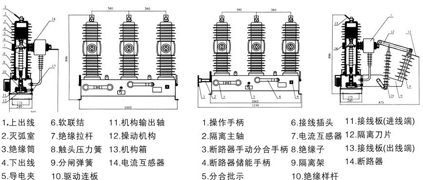 3、操作機構為彈簧操作機構,有手動和電動兩種,需要時可加裝遙控操作裝置和躲避合閘涌流裝置。要求的外供電源功率不大于70W,易于配備后備電源。設計獨特的緩沖裝置,性能優異,反彈小,噪聲低。